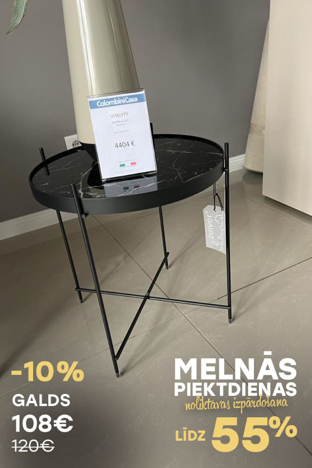 MELNĀS PIEKTDIENAS noliktavas izpārdošana itāļu mēbeļu salonā Colombini Casa! Atlaides līdz -55% visām itāļu mēbelēm!