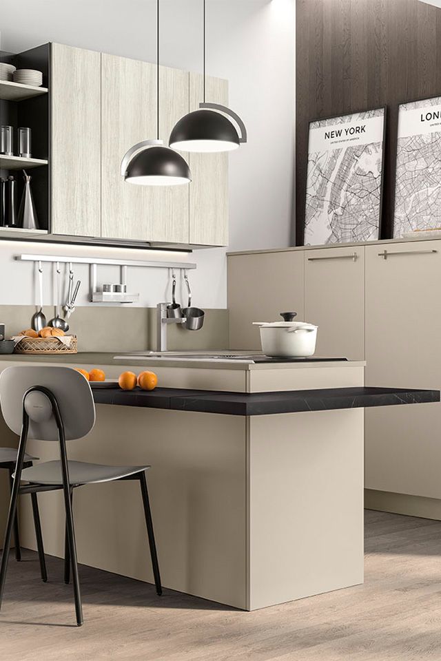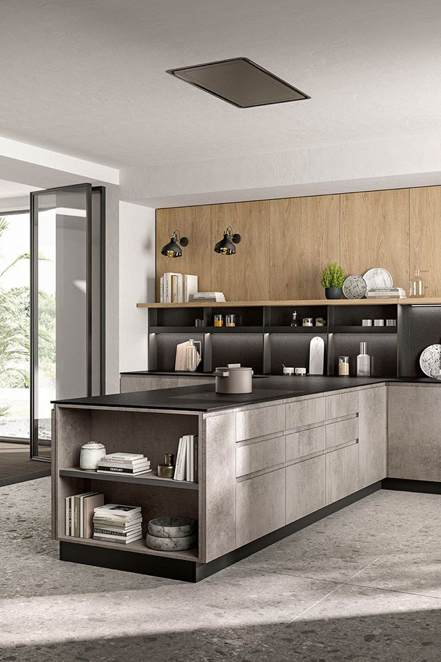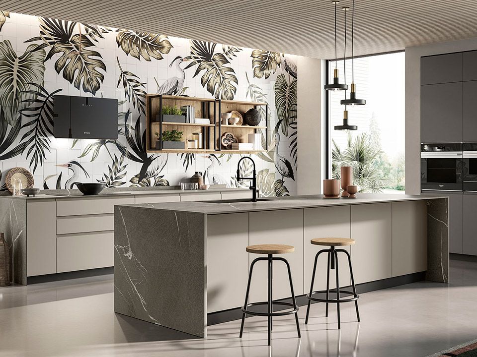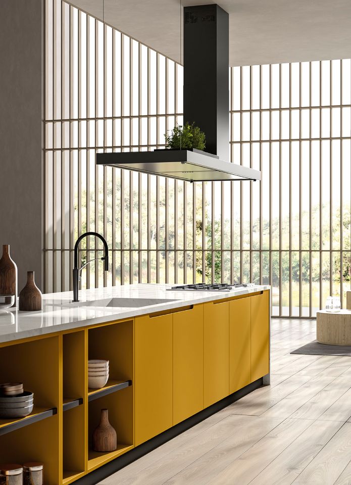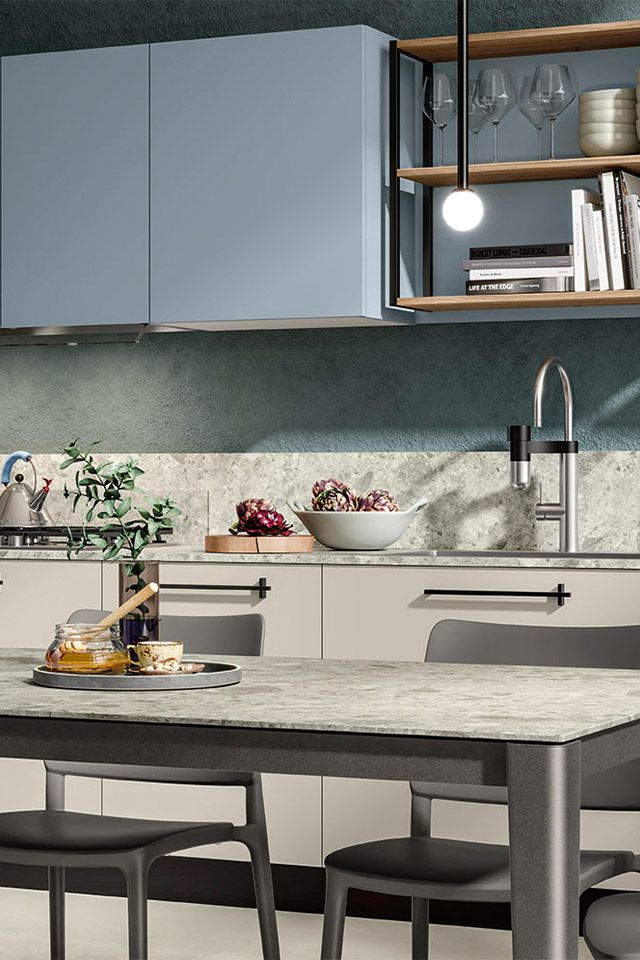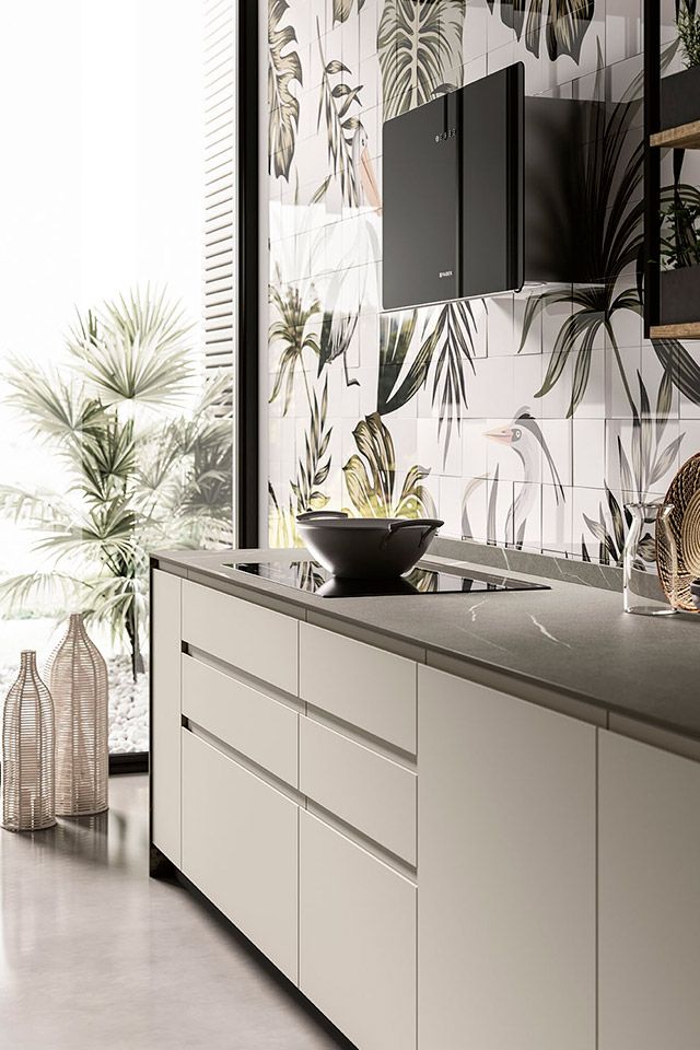 Šīs virtuves izceļ īpašas detaļas: krāsa, raksturojošie elementi un kaisle. Darba virsmas ir veidotas tā, lai izceltu materiālus, kas iedvesmo un nodrošina praktisku lietošanu ikdienā.