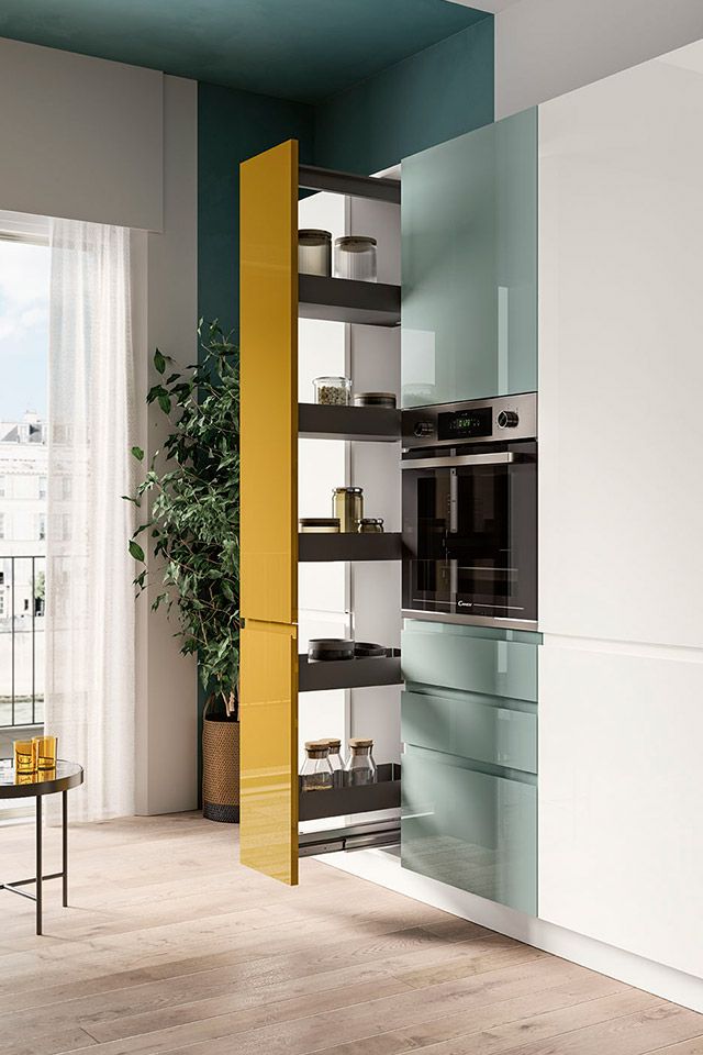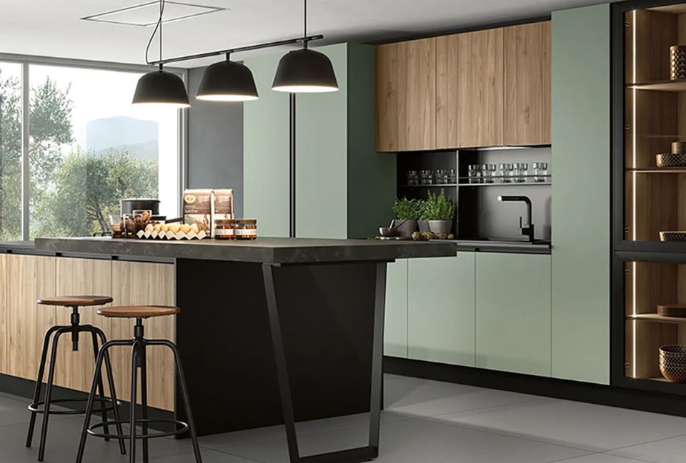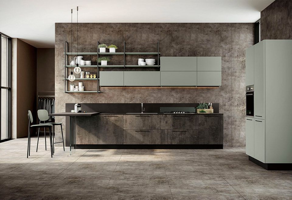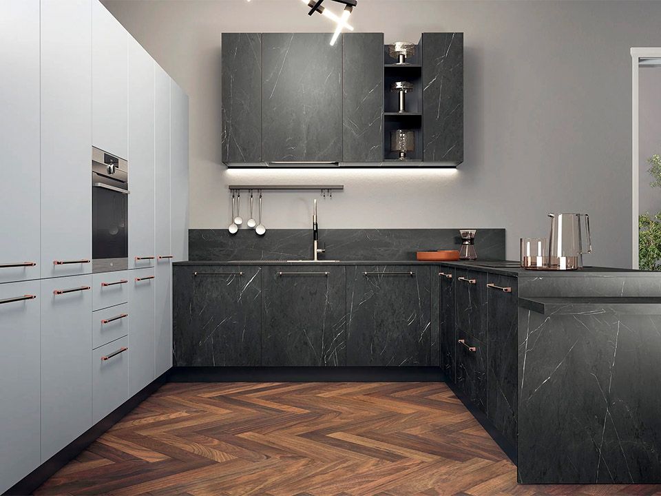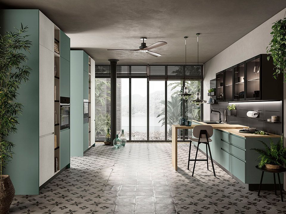 Šīs virtuves izceļ īpašas detaļas: krāsa, raksturojošie elementi un kaisle. Darba virsmas ir veidotas tā, lai izceltu materiālus, kas iedvesmo un nodrošina praktisku lietošanu ikdienā.