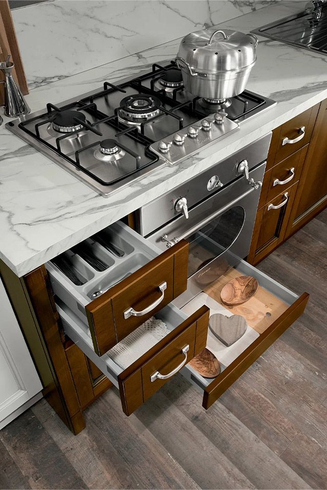 Mēbeļu detaļās slēpjas mūžīgā skaistuma noslēpums: “MIDA” ir virtuve, kas radīta lietošanai daudzu gadu garumā. No dekoriem līdz aksesuāriem, no papildinājumiem līdz tipiskiem tradicionāliem elementiem. Šīs mēbeles palīdzēs atklāt klasiskā stila daudzās potenciālās iespējas.