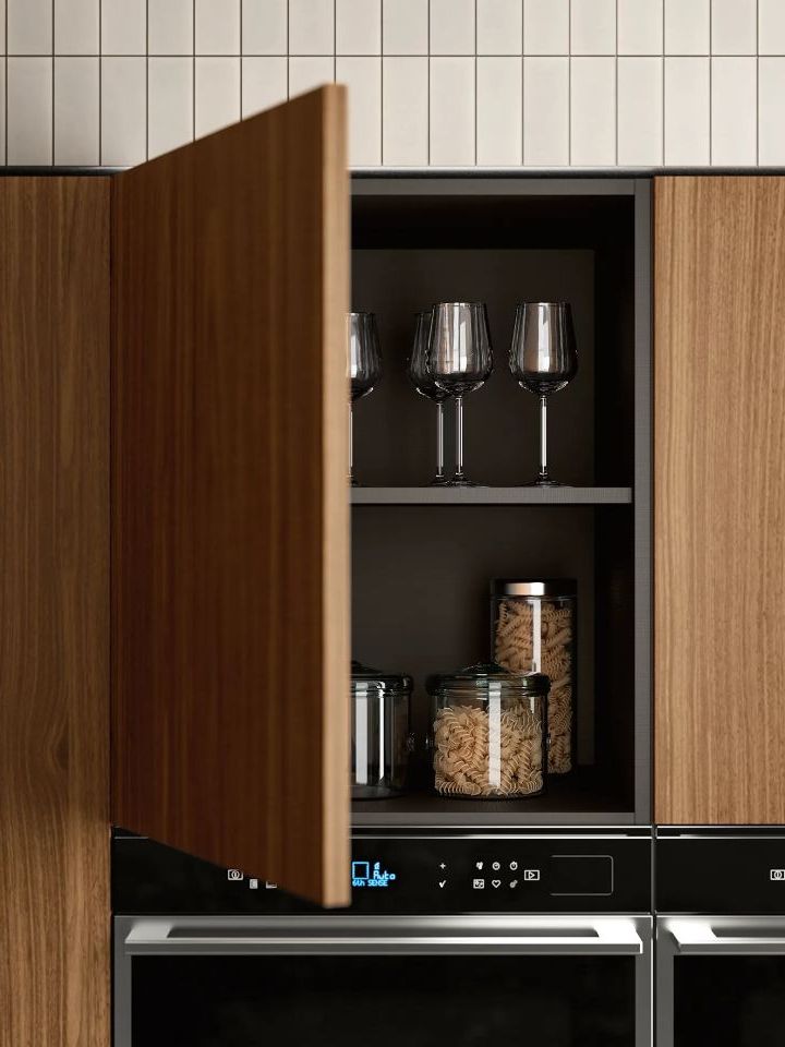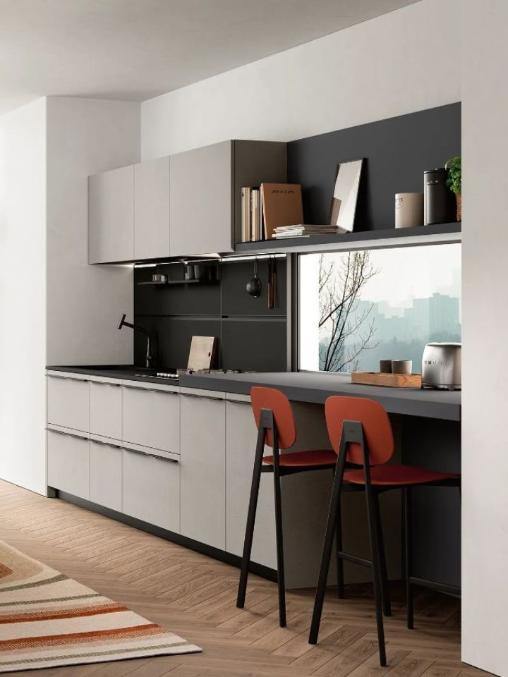 Lungomare ir ne tikai virtuve, bet arī radoša formu un ģeometrijas koncentrācija, kas kalpo ergonomikai. Monolītu elementu ieviešana un dažādu augstumu un dziļumu apvienošanas iespēja ļauj projektēt virtuvi, radot patiesi unikālus risinājumus.